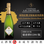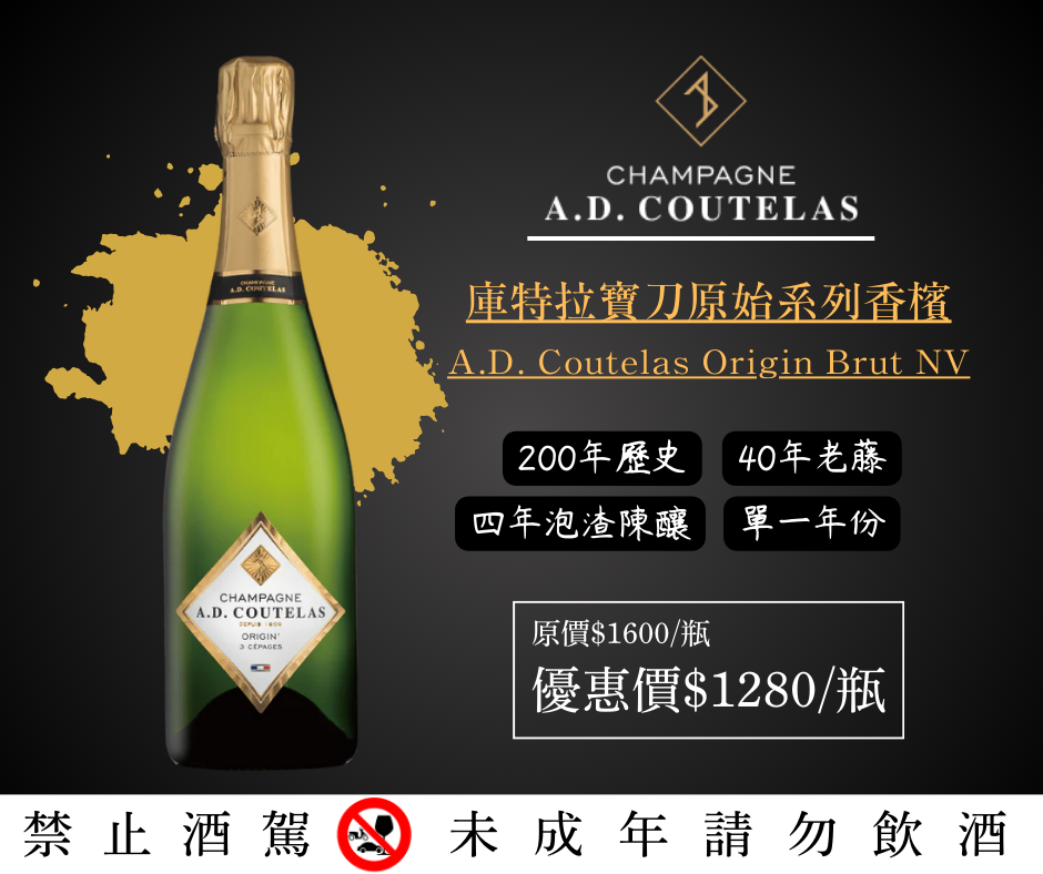 ⭐️精選超值小農香檳⭐️ 🍾庫特拉寶刀原始系列香檳 🍾A.D. Coutelas Origin Brut NV 🔸40年荖藤 🔸泡渣陳釀48個月 🔸單一年份釀造,更加展現風土特色 40% Chardonnay、30% Pinot Noir、30% Pinot Meunier 氣泡綿密。優雅的花香與柑橘類香氣,尾韻悠長💰優惠價$1280/瓶 A.D. Coutelas香檳,💥超過200年傳承家族酒莊,現由第八代Damien Coutelas執掌 多數葡萄藤的樹齡已經超過60歲。Damien從過去12年間,使用挪威海藻作為葡萄園施肥的有機原料之一,也因此獲得法國最高級別環保認證(HVE)之殊榮。除了賦予土壤更豐富的礦物質之外,更能幫助提升酒質的複雜度‼️ 貼心提醒😘❣️ 酒後不開車🚫🚘 未成年請勿飲酒🔞