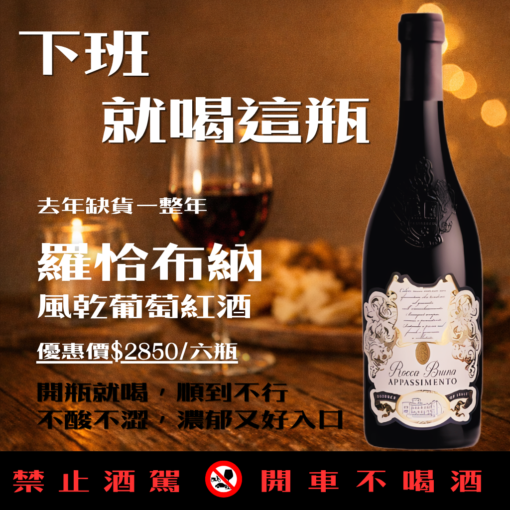 好康優惠, 營業公告 適合天天喝得酒-羅恰布納風乾葡萄紅酒 Blue Monday很累吧~ 這種時候,其實不用想太多 回家開一瓶順順的紅酒,就很剛好 這支很多客人都是這樣開始的 一喝就變固定會回購的那種 開瓶就能喝,不用醒 順到會不小心一杯接一杯 不酸不澀,濃郁又很好入口 而且去年缺貨一整年 很多人想買還買不到 現在有貨了 想放鬆一下的時候,它真的很適合 🍷義大利羅恰布納風乾葡萄紅酒 💰優惠價$2850/六瓶 貼心提醒😘❣️ 酒後不開車🚫🚘 未成年請勿飲酒🔞 2026年4月20日/通過: louis8312001 https://redwine.com.tw/wp-content/uploads/2026/04/羅恰布納.png 1024 1024 louis8312001 /wp-content/uploads/2018/01/red01.png louis83120012026-04-20 19:34:252026-04-20 19:41:22適合天天喝得酒-羅恰布納風乾葡萄紅酒